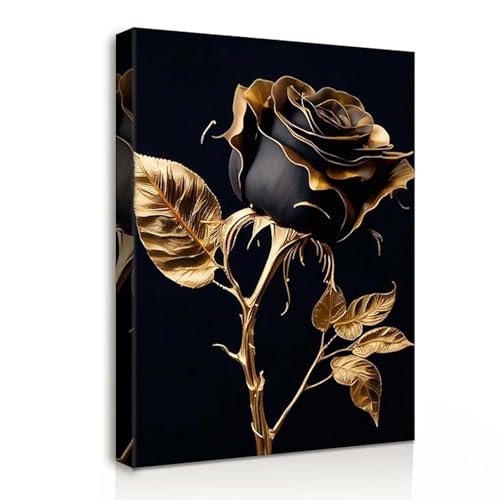 - Exquisites Design – Schwarze Rose auf dunklem Hintergrund Das edle Leinwandbild kombiniert die Symbolik einer Rose mit luxuriöser Goldoptik – ideal als Wandbild Wohnzimmer, Bilder Schlafzimmer oder für ein stilvolles Ambiente im Flur.
